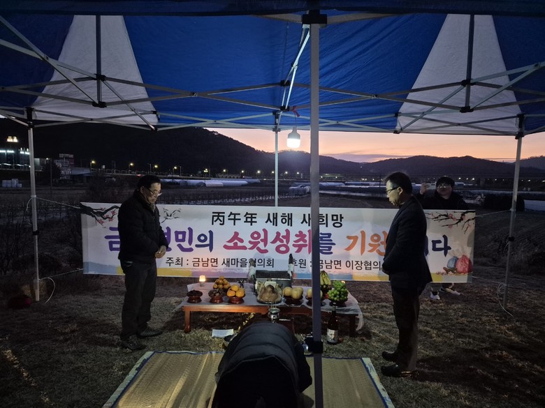 [세종 세계타임즈=이채봉 기자] 세종특별자치시 금남면새마을협의회(회장 이원국·송은순)가 1일 금덕정에서 병오년 새해 해맞이 행사를 열고 주민들의 안녕과 지역발전을 기원했다.