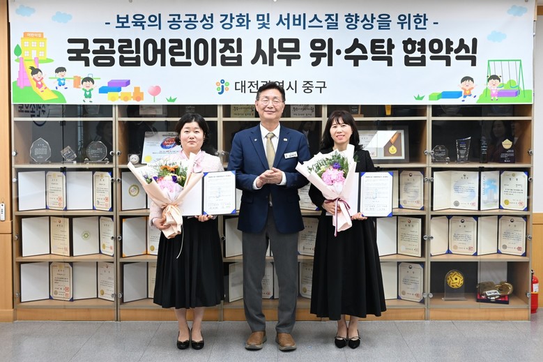 [중구 세계타임즈=이채봉 기자] 대전 중구(구청장 김제선)는 22일 보육의 공공성 강화와 서비스 질 향상을 위해 관내 국공립어린이집 설치·운영 및 위·수탁 협약을 체결했다고 밝혔다.