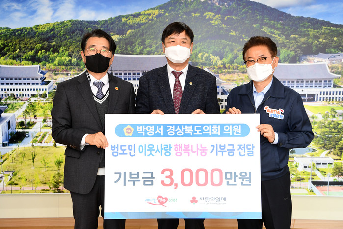 [경북=세계타임즈 한성국 기자] 경상북도의회 박영서(문경) 의원이 ‘범도민 이웃사랑행복나눔’ 기부금 3천만 원을 8일 경북사회복지공동모금회에 전달했다.