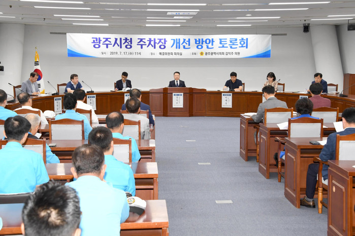 광주시의회 김익주 의원(광산1)이 17일 주최한 ‘광주시청 주차장 개선 토론회’에서 토론자와 방청석 참여자들은 광주시청 주차장을 이용하는데 너무 불편하다며, 유료화로 전환해서 시청을 찾는 민원인들의 편의를 제공해야 한다고 입을 모았다.