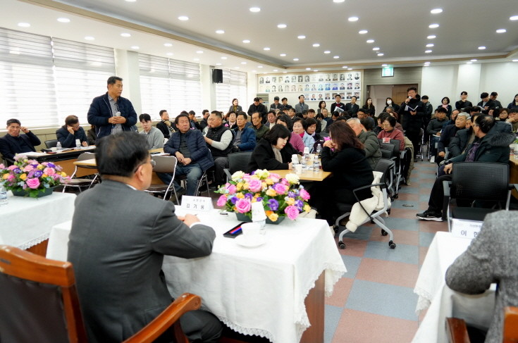 이어진 대화 시간에는 군민들의 건의사항을 직접 청취하고, 김 군수가 답변에 나서며 배석한 국장과 관련 부서장, 직속기관·사업소장, 관계자 등이 보충 설명을 통해 현안 해결 방안을 함께 모색한다.