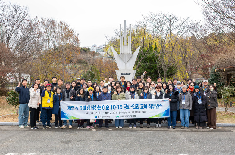[전남 세계타임즈=우덕현 기자] 전라남도교육청과 제주특별자치도교육청은 12~13일 여수 순천 10·19 유적지에서 전남·제주 교원들이 함께하는 직무연수를 운영하며, 우리 현대사의 아픔을 성찰하는 평화·인권 교육을 학교 현장에 뿌리내리는 데 힘을 모으고 있다.