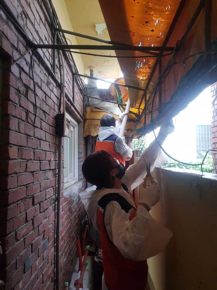 천정훈 집수리봉사단장은 “오늘 천막교체 봉사로 장마철에 빗물누수로 고생하는 아이들이 편하게 생활할 수 있게 되어서 행복과 보람을 느낀다.”고 말했다.