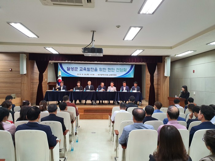 [대구=세계타임즈 한성국 기자] 대구시의회 교육위원회는 달성군 다사권역 학교장, 학교운영위원 및 학부모 등을 초청해 현장의 목소리를 청취하고, 교육현안 문제 해결 및 의정활동 반영을 위한 간담회를 8월 29일 오후 2시 대구왕선초등학교 시청각실에서 개최하였다.