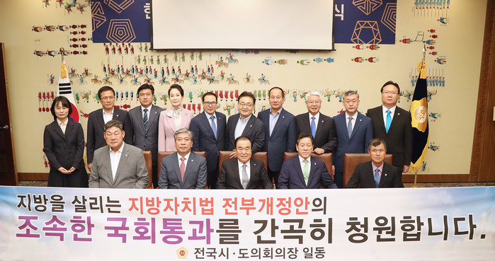 한편, 전국시도의회의장협의회는 광역의회 의장들이 오는 14일에 갖는 행안부장관과 간담회에서 지방자치법 전부개정안의 조속한 국회 통과를 협조요청하고, 지역을 살리는 다양한 자치분권 활동에 대한 의견을 나눌 것이라고 밝혔다.