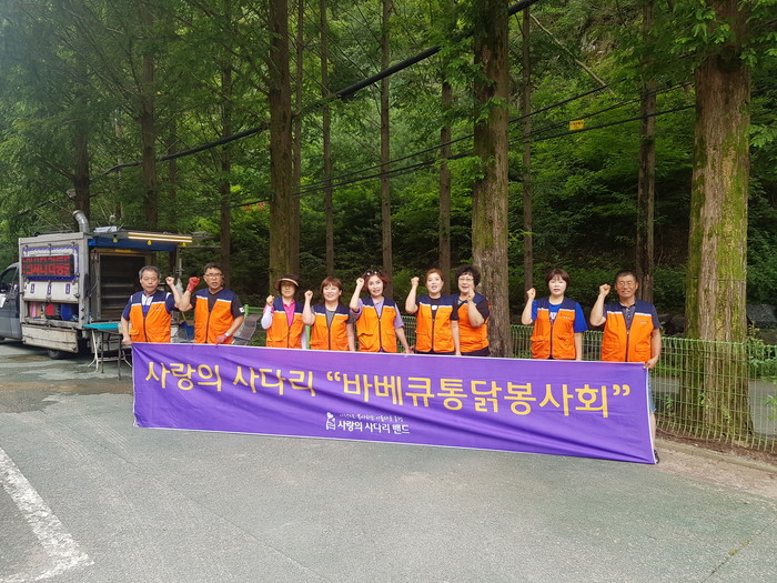 [대전=세계타임즈 이장성 기자] 폭염에도 따뜻한 이웃사랑을 꾸준히 전달하고 있는 대전시 봉사단체 사단법인 사랑의 사다리 밴드(리더 이정제)는 25일 오후1시, 장태산휴양림에 위치한 중증장애인거주시설 한걸음(원장 유하나)에서 물놀이와 바비큐통닭봉사로 중증장애인 아이들과 즐거운 시간을 보냈다.