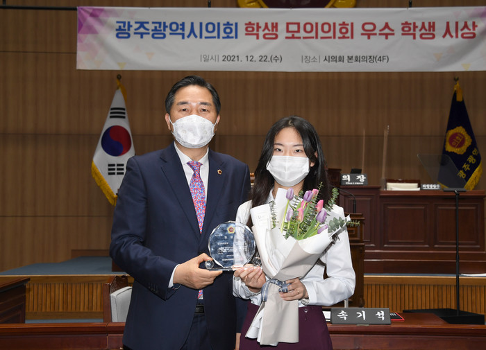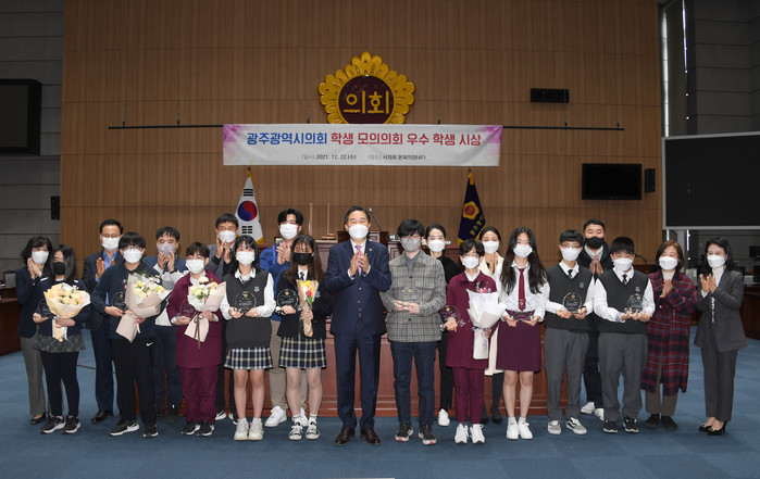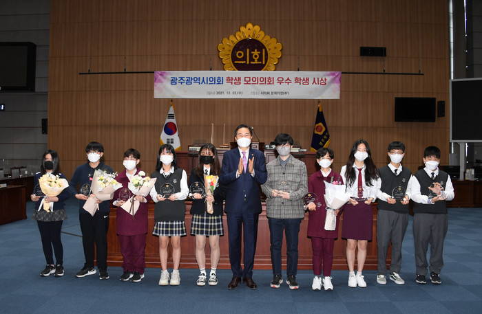 [광주=세계타임즈 손권일 기자] 광주광역시의회(의장 김용집)는 12월 22일(수), 시의회 본회의장에서 ‘2021년도 학생 모의의회 우수 학생 시상식’을 개최했다고 밝혔다.