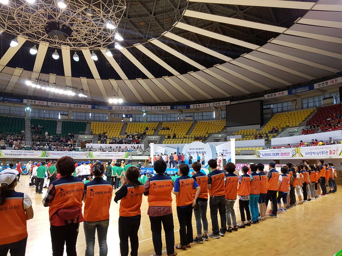 [대전=세계타임즈 이장성 기자] 7천명 SNS 대전시 봉사단체 사랑의 사다리 밴드(리더 이정제)는 29일 오전9시~오후4시 대전시 노인연합회(회장 이철연)주관으로 5개구 자치구회원 2,500명이 대전충무체육관에서 진행된 제20회 어르신 체육대회에서 교통 및 행사 진행 봉사로 사회적 효행을 실천하였다.