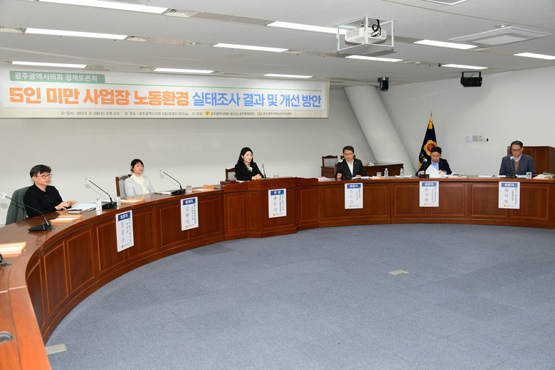 [광주 세계타임즈=손권일 기자] 광주광역시의회 새로운노동특별위원회(위원장 채은지)는 29일 오후 광주시의회 예산결산특별위원회실에서 광주비정규직지원센터와 함께 광주시 5인미만 사업장 노동환경 개선을 위한 정책토론회를 개최했다.