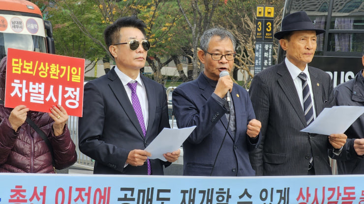 | ▲ 송운학 ‘공익감시 민권회의’ 대표가 11월 9일 오전 10시 30분쯤 광화문광장 이순신 장군 동상 앞에서 열린 ‘시한부 공매도 전면금지 관련 기자회견’에서 공매도 법제 개선개혁 조기완료 등을 촉구하는 ‘여는 인사말’을 하고 있다. |