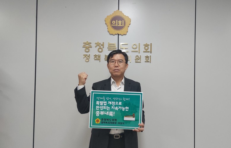 [충북 세계타임즈=이현진 기자] 충북도의회 정책복지위원회 이상식 위원장(청주9)이 27일 ‘중부내륙연계발전지역 지원에 관한 특별법(이하 중부내륙특별법)’ 개정을 위한 릴레이 챌린지에 동참했다.