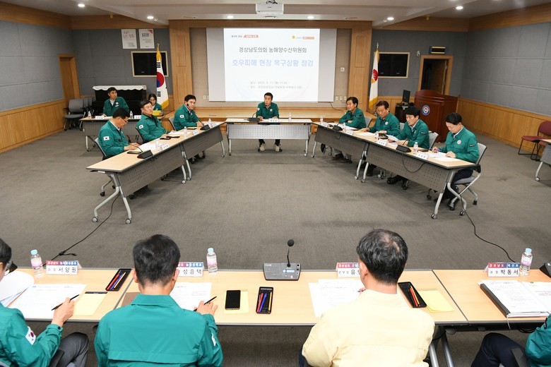한편, 농해양수산위원회는 7월 이후 산청, 하동, 창녕, 합천, 진주 등 주요 피해지역을 지속적으로 방문하며 현장 중심의 피해 복구 활동에 앞장서고 있으며, 도내 농수산업 현장의 애로사항 해결을 위한 실효성 있는 의정활동을 이어가고 있다.