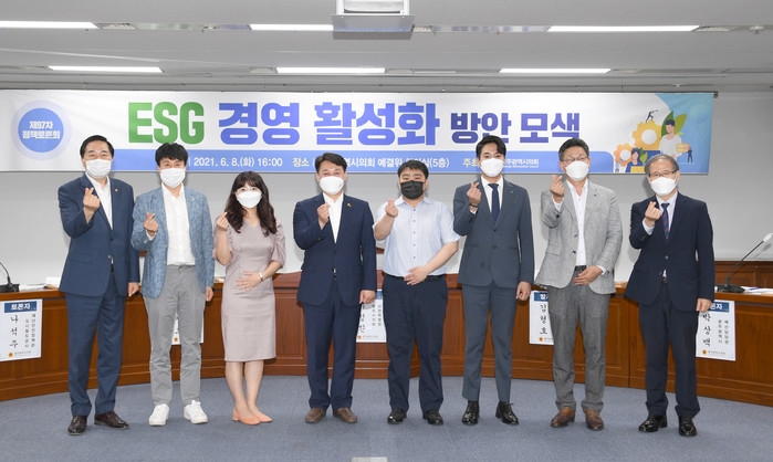 이날 좌장을 맡은 이정환 의원은 “일반인에게는 다소 생소하게 느껴질 수 있는 ESG는 이제 기업의 친환경 경영, 사회적 책임경영, 투명 경영을 평가하는 핵심지표가 되었다”고 전하며, “ESG 경영이 시대적, 사회적 대안가치로 떠오르고 있는 지금, 이번 토론회를 통해 광주시가 ESG라는 사회적 가치를 실현하기 위해 무엇을 어떻게 준비해야 하는지 논의하고 지혜를 모을 수 있는 아주 소중한 자리가 마련되었다”고 밝혔다.