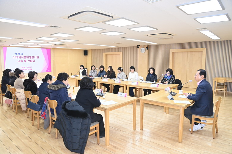 간담회에서는 ▲2026년 식품위생관리 제도 변경 사항 ▲식품위생 안전관리 방향 공유 ▲현장 점검 과정에서의 애로사항 ▲식품안전 홍보 및 예방 활동 강화 방안 등을 주제로 감시원 역량 강화를 위한 교육과 함께 자유로운 의견 교환이 이뤄졌다.