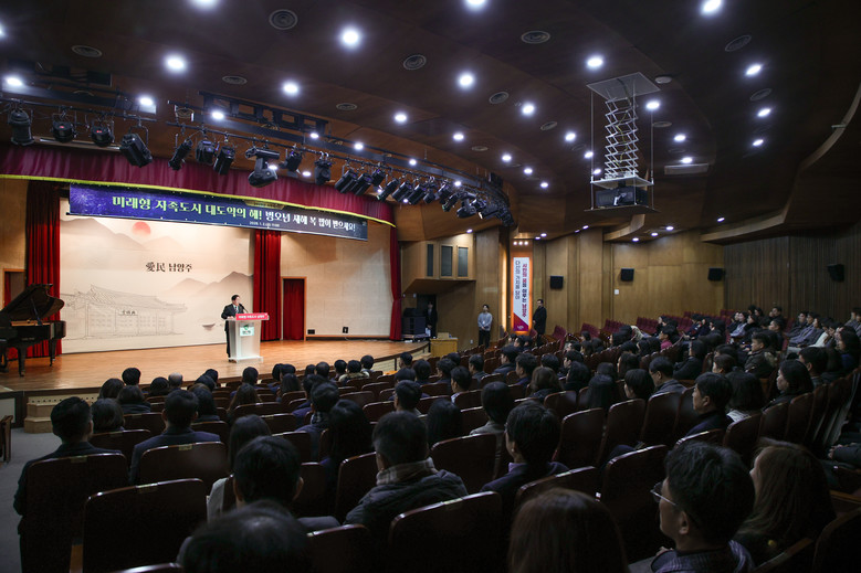 이후 주광덕 시장의 신년사가 이어졌으며, 인공지능 기반 정약용 캐릭터가 전하는 새해 메시지 영상이 상영돼 직원들의 이목을 끌었다.
