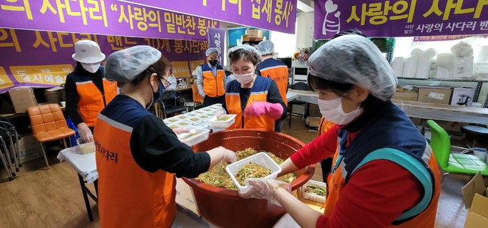[대전=세계타임즈 이채봉 기자] 코로나19 상황에서도 비대면 봉사로 다양한 나눔을 실천하고 있는 SNS 9천명 대전시 봉사단체 사랑의 사다리 밴드(리더 이정제)는 19일 오후3시, 서구보건소에 잡채 130인분 봉사로 우리 사회의 따뜻한 사랑을 실천 하였다.