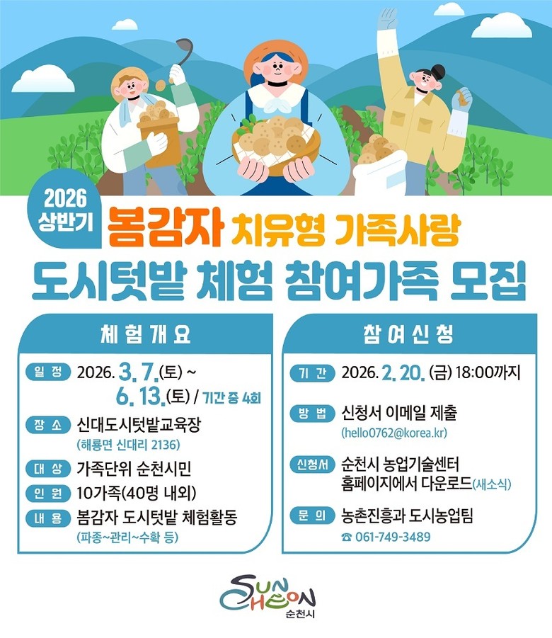 신청은 전자우편으로 접수하며, 자세한 사항은 순천시농업기술센터홈페이지(https://www.suncheon.go.kr/sca)에서 확인할 수 있다.
