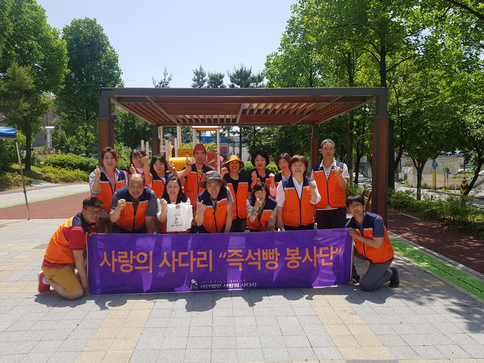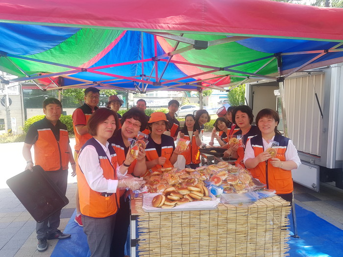 이날 빵 봉사에는 박두현 회장, 김호현 이사, 빅영준 이사, 유희자 이사 등 회원 30명이 참석하여 단팥빵과 소보로를 600개를 만들어서 300명 어르신들께 2개씩 전달해 드렸다.