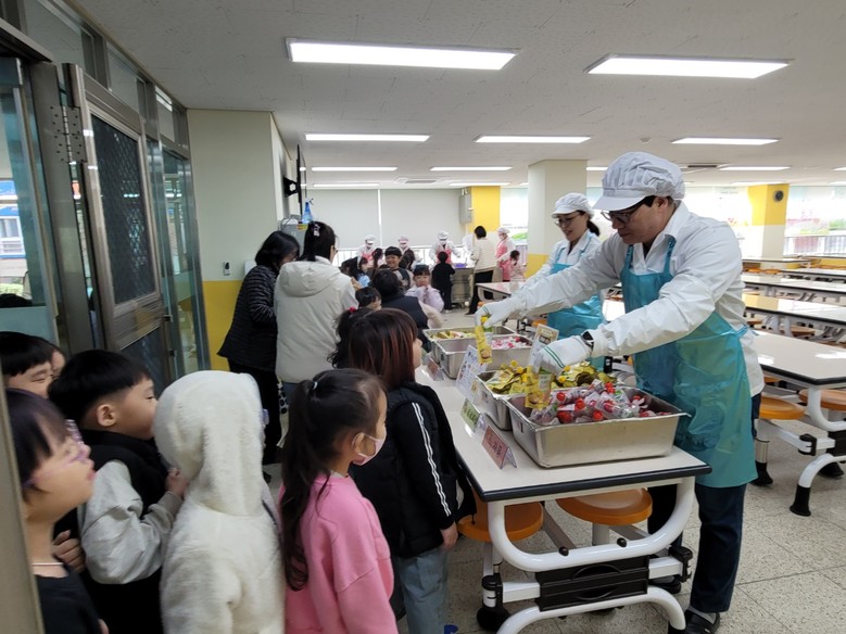 ◦ 첫 번째 자율선택급식 날을 맞아 교장과 교감은 배식도우미로 나서