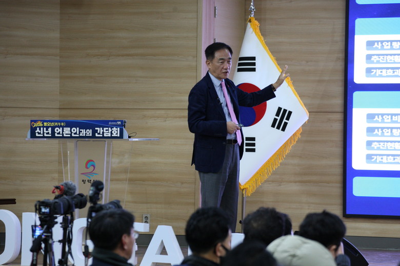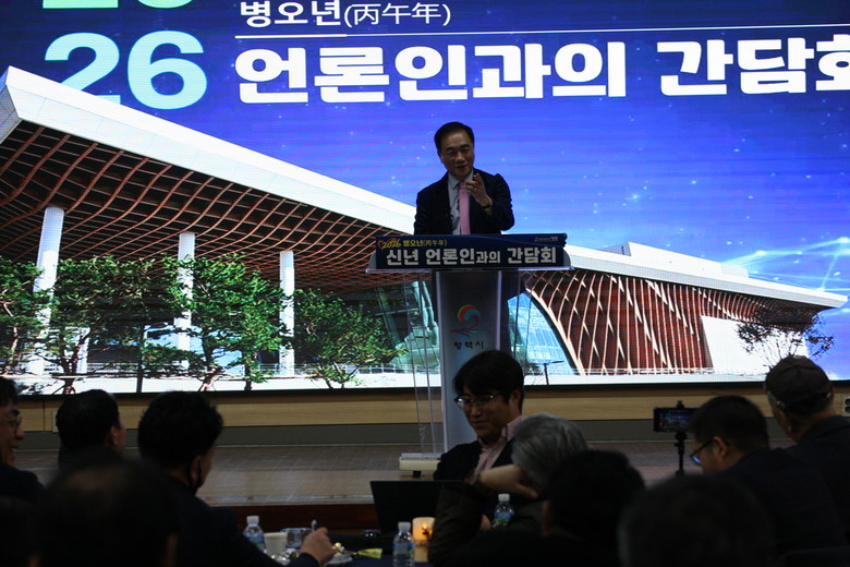 이날 간담회에는 정장선 평택시장을 비롯한 간부 공무원과 100여 명의 언론인이 참석했으며, 주요 성과 보고와 2026년 시정 운영 방향 설명, 질의응답 순으로 진행됐다.