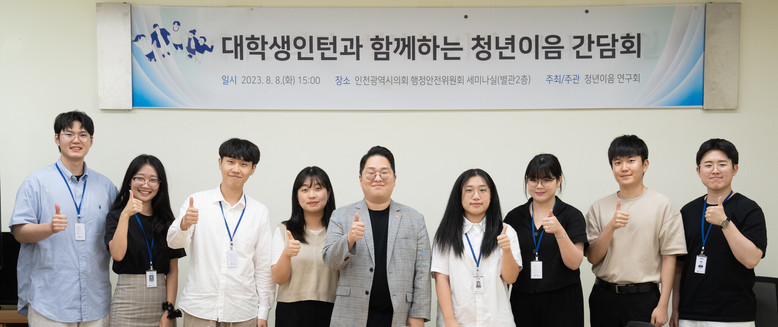 인천시의회는 8일 행정안전위원회 김대영(민·비례) 의원이 대표의원으로 있는 ‘청년이음연구회’ 주최·주관으로 대학생 인턴과 함께하는 청년이음 간담회를 진행했다.