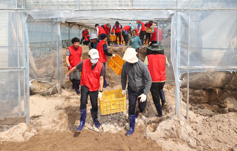 이 날 복구작업에 참여한 남영숙 농수산위원장, 박승직 건설소방위원장 등 도의원들과 직원들은 파프리카 재배 하우스 피해복구 작업에 힘을 보탰으며, 이재민들이 조속히 일상으로 복귀할 수 있기를 한마음으로 기원했다.