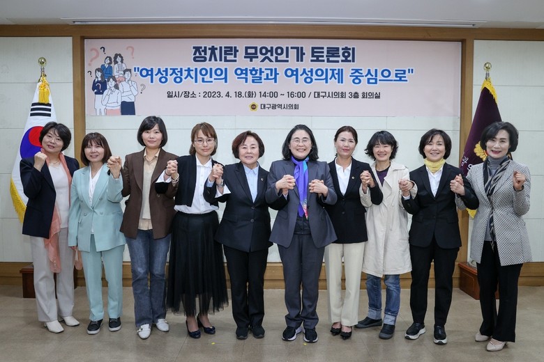 [대구 세계타임즈=한성국 기자] 대구시의회 육정미 의원(교육위원회, 비례)은 18일(화) 오후 2시 대구시의회 3층 회의실에서 ‘정치란 무엇인가?(여성정치인의 역할과 여성의제를 중심으로)’를 주제로 토론회를 개최했다.