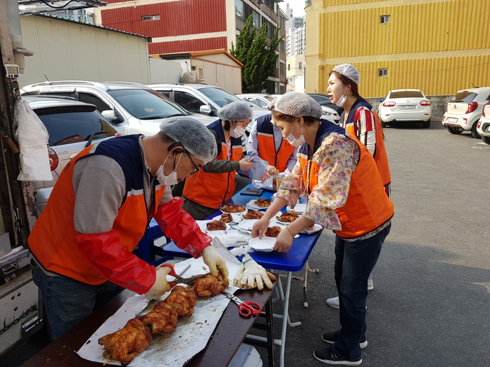 이날 업무협약식 이후에 사랑의 사다리 밴드는 가장동 지역아동센터 20명의 아이들에게 바비큐 통닭과 다과를 준비해서 전달을 하였다.