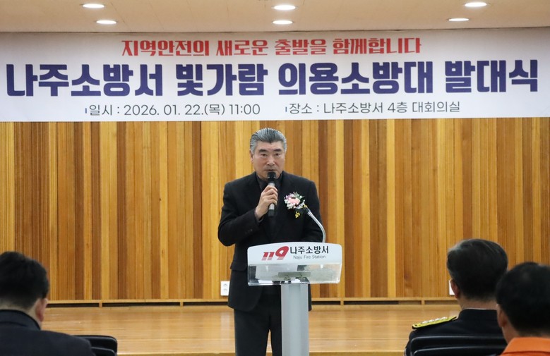 최명수 도의원은 “앞으로 빛가람 의용소방대가 나주소방서와 긴밀히 협력해 화재 예방은 물론 재난 대응과 각종 봉사활동에 이르기까지 지역 안전의 최일선에서 중요한 역할을 수행할 것으로 기대한다”고 말했다.
