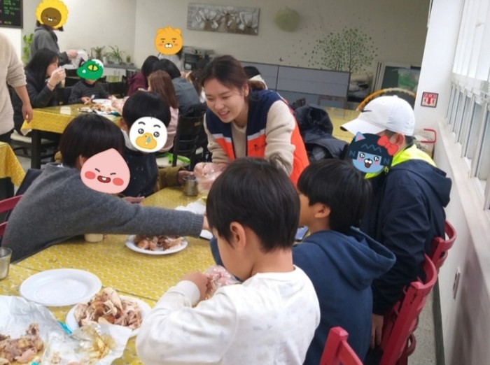 신상일 통닭 봉사 단장은 “크리스마스날에 440명의 아이들이 통닭을 맛있게 먹는 모습에서 행복과 보람을 느낀다.”고 말했다.