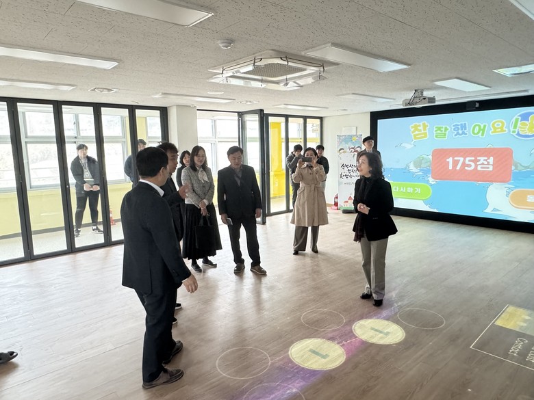 준공 후 파주교육지원청 전선아 교육장은 변화된 학교를 방문하여 학교 사용자의 의견을 청취하고 현재 설치된 스마트기기가 교수학습 활동에 어떻게 적용되는지를 현지 확인하였다.