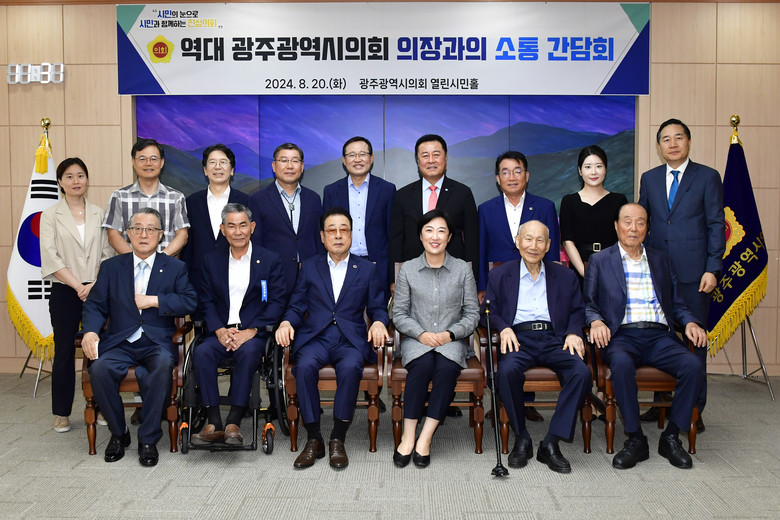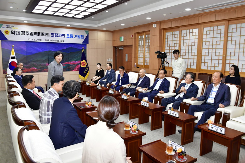 [광주 세계타임즈=손권일 기자] 광주광역시의회(의장 신수정)는 20일, 시의회 열린시민홀에서 역대 광주광역시의회 의장들을 초청하여 제9대 의회 후반기 의회 운영방향을 설명하고 전직 의장들의 의정활동 노하우를 공유하는 소통 간담회를 개최했다.