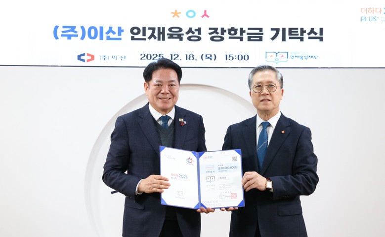 한광두 ㈜이산 사장은 “지역사회로부터 받은 사랑과 성원에 보답하고, 미래세대의 건강한 성장과 꿈을 응원하고자 장학금을 기탁하게 되었다”며, “이 장학금이 학생들에게 든든한 디딤돌이 되길 바란다”고 밝혔다.