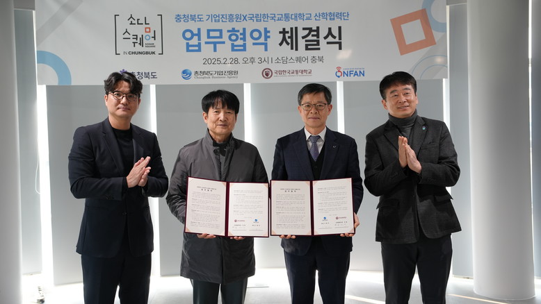 [충북 세계타임즈=이현진 기자] “충북소상공인지원센터(충북기업진흥원)”와 “소담스퀘어 충북(국립한국교통대학교 산학협력단)”은 28일 충북 소상공인 지원을 위한 업무협약을 체결했다. 이장연 충청북도 소상공인정책과장, 신형근 충북기업진흥원장, 홍정의 국립한국교통대학교 교학부총장, 성보현 소담스퀘어 충북 센터장이 참석한 이날 행사에서 충청북도와 양 기관은 우수 소상공인 발굴 및 육성, 디지털 전환 지원 대상 소상공인 모집과 홍보 등 다각도의 지원사업을 추진하기로 뜻을 모았다.