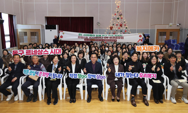 이날 성과공유회는 박희조 동구청장, 오관영 동구의회 의장을 비롯해 행복한어르신복지관, 생명종합사회복지관, 지역사회보장협의체위원, 복지통장 등 100여 명이 참석한 가운데, ▲축하공연 ▲유공자 표창 ▲성과공유 발표 ▲활동영상 상영 ▲소감 나눔 ▲2026년 사업계획 발표 ▲기념촬영 순으로 진행됐다.