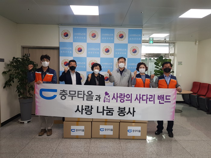 [대전=세계타임즈 이채봉 기자] 코로나19 상황에서도 비대면 봉사로 다양한 나눔을 실천하고 있는 SNS 9천명 대전시 봉사단체 사랑의 사다리 밴드(리더 이정제)는 1일 오후2시, (사)대한노인회대전대덕구지회(지회장 김금자)에 충무타올 300장 전달로 사회적 효행을 실천 하였다.