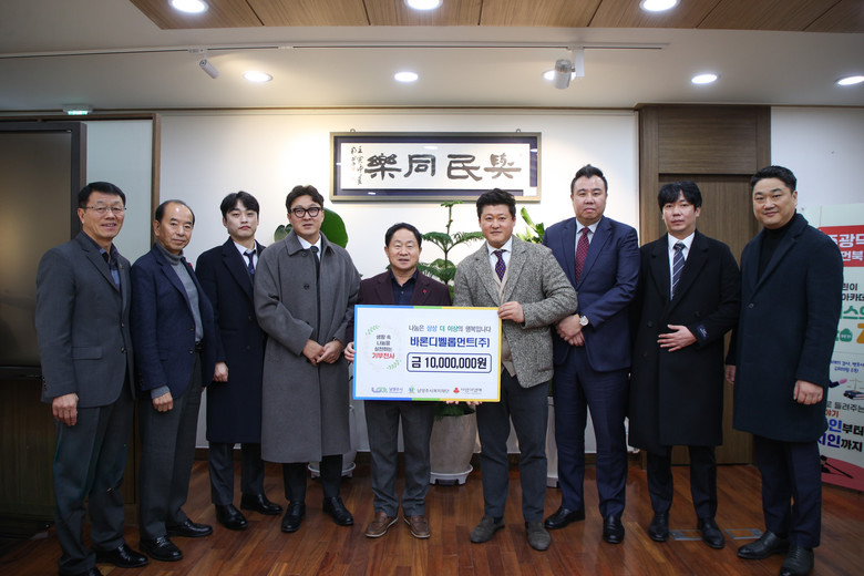 [남양주시 세계타임즈=송민수 기자] 남양주시는 5일 바론디벨롭먼트 주식회사(대표 이정우)가 지역 내 취약계층 지원을 위해 후원금 1천만 원을 남양주시복지재단(대표이사 원병일)에 기탁했다고 밝혔다.