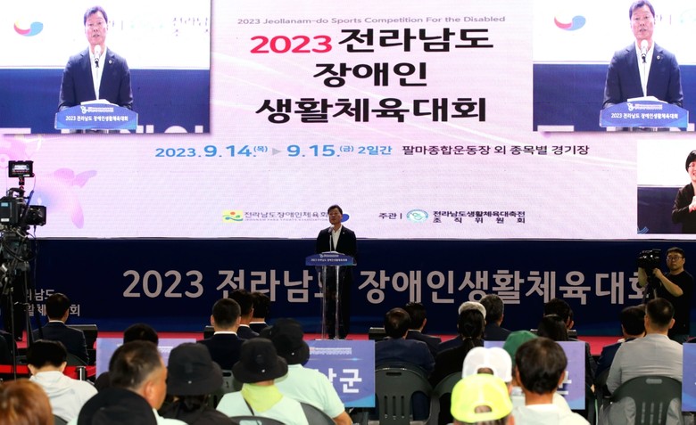 [전남 세계타임즈=우덕현 기자] 전라남도의회 서동욱 의장은 14일 순천시 팔마체육관에서 열린 2023 전라남도 장애인생활체육대회 개막식에 참석했다.