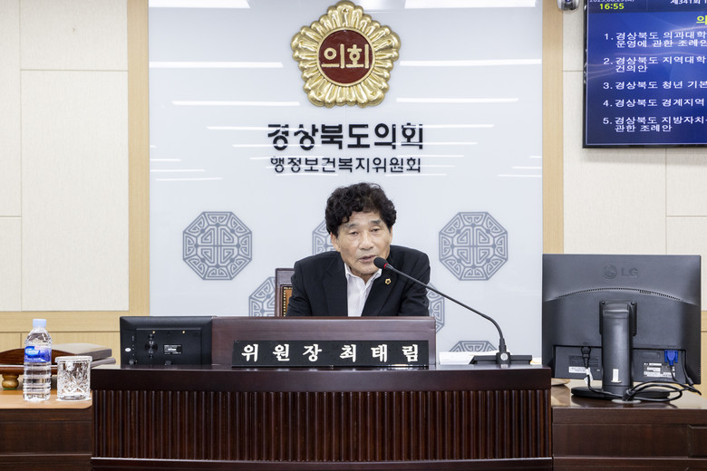 [경북 세계타임즈=한윤석 기자] 최태림 경상북도의회 행정보건복지위원회 위원장(국민의힘, 의성) 은 지난 11월 29일 열린 자치행정국에 대한 내년도 예산 예비심사에서 군위군 대구 편입에 따른 군위군 소재 도유재산의 대구시 이관에 대한 추진상황을 점검했다.