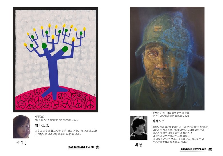 배드보스 아트 플레이스는 “전쟁은 최근 러시아와 우크라이나만의 문제가 아닌 전 세계적인 문제이며 절대 일어나서는 안되는 일이라 생각하며 이 그룹전을 기획하게 되었다.”고 전했다.