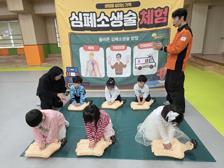 둘째, 전문 강사와 함께하는 찾아오는 응급처치교육을 실시하여 심폐소생술(CPR), 하임리히법, 상황별 응급처치 등 유아가 직접 체험하며 익힐 수 있는 프로그램을 운영했다. 유아들은 인형 모형을 활용한 가슴 압박, 간단한 사고 상황 대처 등을 경험하며 실생활과 연결된 안전 역량을 높였다.