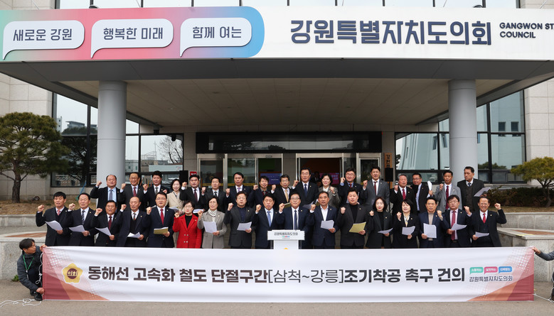 [강원도 세계타임즈=김민석 기자] 강원특별자치도의회가 3월 12일(화) ‘동해선 고속화철도 단절구간[삼척~강릉] 조기착공’건의문을 발표(삼척출신 심영곤 의회운영위원장 낭독)할 계획이다.