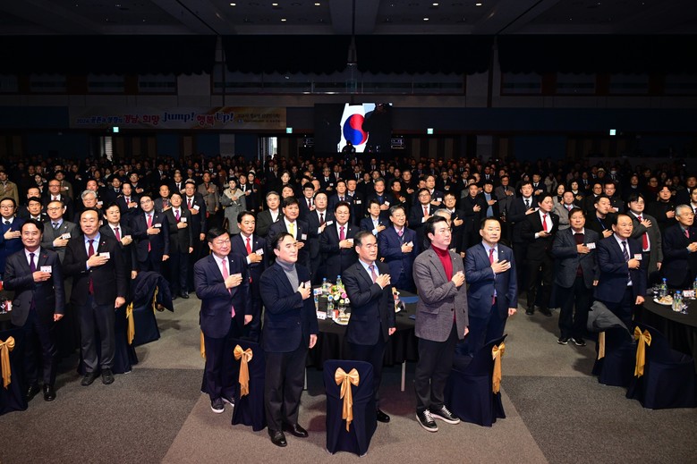 [경남 세계타임즈=최성룡 기자] 경상남도의회(의장 최학범)는 1월 5일 창원컨벤션센터 컨벤션홀에서 열린 ‘2026년 경상남도 신년인사회’에 최학범 의장을 비롯한 도의원 36명이 참석해 새해 도정 운영 방향을 공유하고 도민과 함께 희망찬 출발을 다짐했다.
