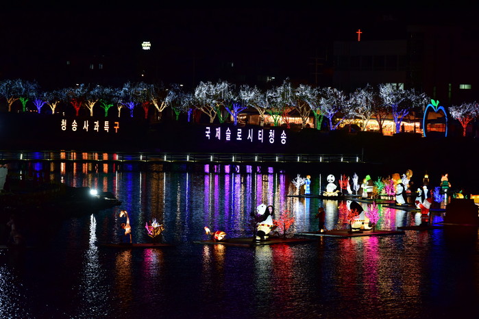 ▲ 사과축제장 유등으로 물들은 용전천