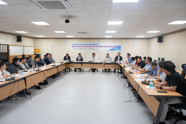 [인천 세계타임즈=심하린 기자] 인천광역시의회 인천재원확보연구회(대표 의원 신동섭)는 13일 인천시 공감회의실에서 대한주택관리사협회, 인천광역시아파트연합회, 전국아파트입주자대표회의연합회 인천지부의 회장 및 협회장 등을 비롯해 각 군·구별 대표들이 참석한 가운데 ‘전기차 화재 사고 재발 방지를 위한 입주민·관리자 대표 참여 정책 토론 및 예산 확보 방안 마련 간담회’를 개최했다.
