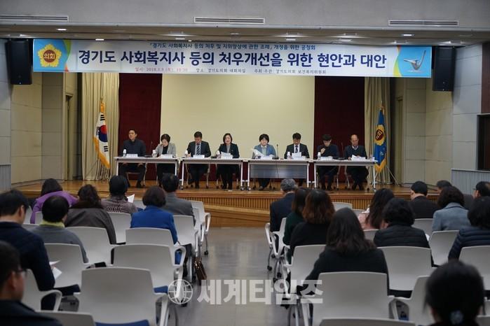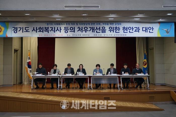 [경기도=세계타임즈 이영진 기자] 경기도의회 보건복지위원회(위원장 문경희)는 8일, 경기도의회 1층 대회의실에서 「경기도 사회복지사 등의 처우 및 지위향상에 관한 조례」개정을 위한 공청회를 개최했다.