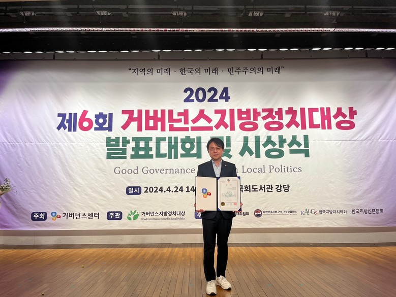 [광주 세계타임즈=손권일 기자] 광주광역시의회 박수기 의원(더불어민주당· 광산구5)은 거버넌스센터에서 주관하는 <2024 거버넌스지방정치대상 공모대회>에서 지방의원부문 최우수상을 수상했다고 24일 밝혔다.