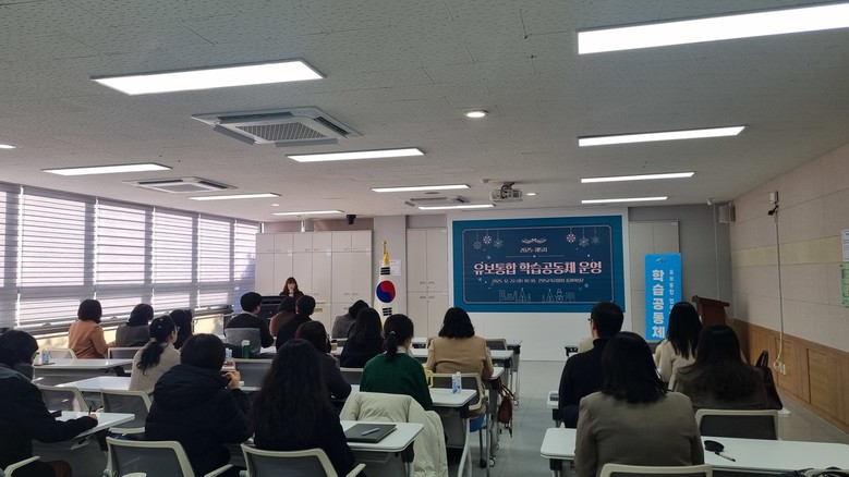 오전에 진행된 유보통합 학습공동체는 교육지원청, 지자체 파견 인력 등 업무담당자 35명이 참석하여, ▲지역별 기관·영유아 현황 ▲교원(보육교직원)·특색사업 현황 ▲재정 현황 ▲보건·급식 운영 방안▲ 재산 현황 ▲기록물 이관 등 분석한 내용을 공유하며 올 한 해 진행된 학습공동체 운영을 점검하고 성과를 함께 논의했다.