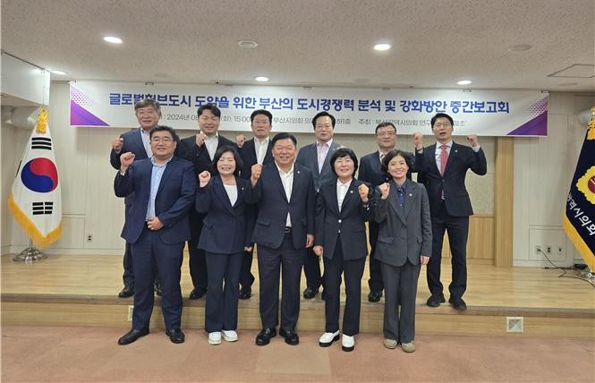 [부산 세계타임즈=이용우 기자] 부산광역시의회 의원연구단체 “구절초”(대표 강철호 의원)는 8월 27일, 부산을 글로벌 허브 도시로 발전시키기 위한 전략과 로드맵을 점검하는 중간보고회를 개최했다. 이번 보고회는 부산의 글로벌 위상을 제고하고, 미래 도시 경쟁력을 강화하기 위한 주요 과제들을 중간 점검하는 자리로 마련되었다.