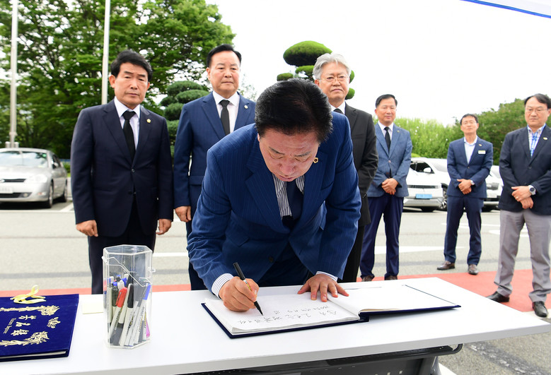 김진부 의장은 헌화와 분향을 한 후 방명록에 “다시는 이런 일이 반복되지 않도록 바꾸어 나갈 것”을 남기며 재발방지에 대한 실질적인 대책 수립을 촉구했다.